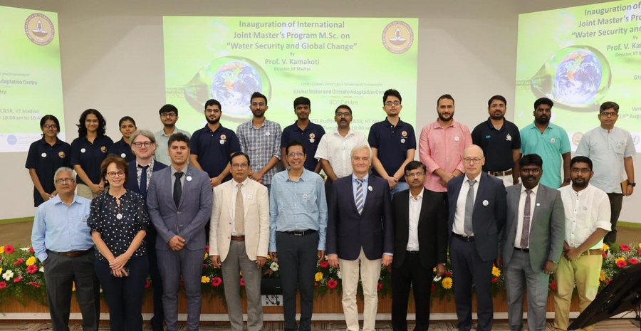 The first cohort of the new Master's degree program in Water Security and Global Change, developed by Global Water and Climate Adaptation Centre - Aachen, Bangkok, Chennai, Dresden(ABCD-Centre), was welcomed to the Indian Institute of Technology Madras (IIT-Madras) at an opening ceremony on August 13, 2024.